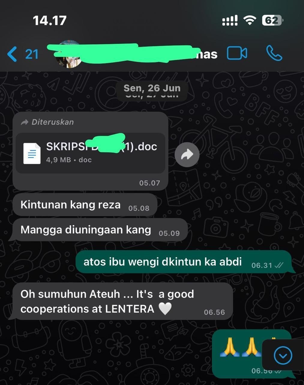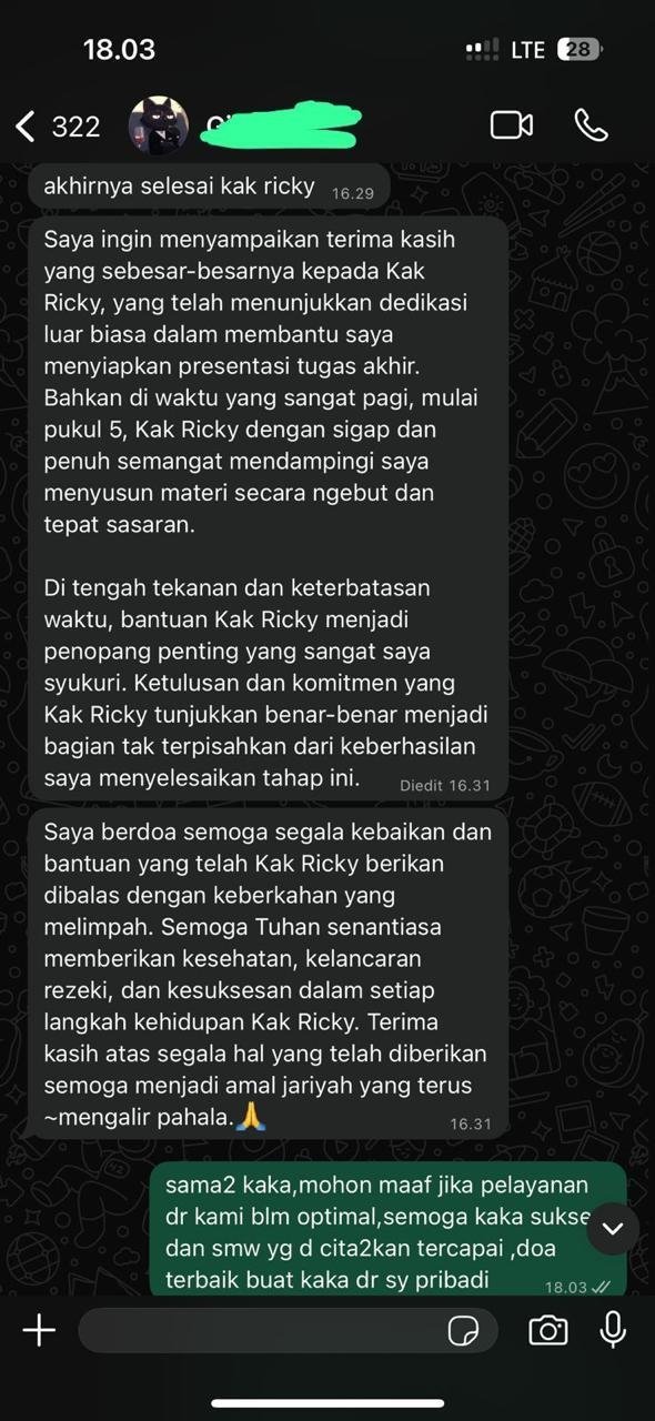 “Pendampingannya bukan disuruh copy, tapi dijelaskan sampai paham. Sangat membantu.”