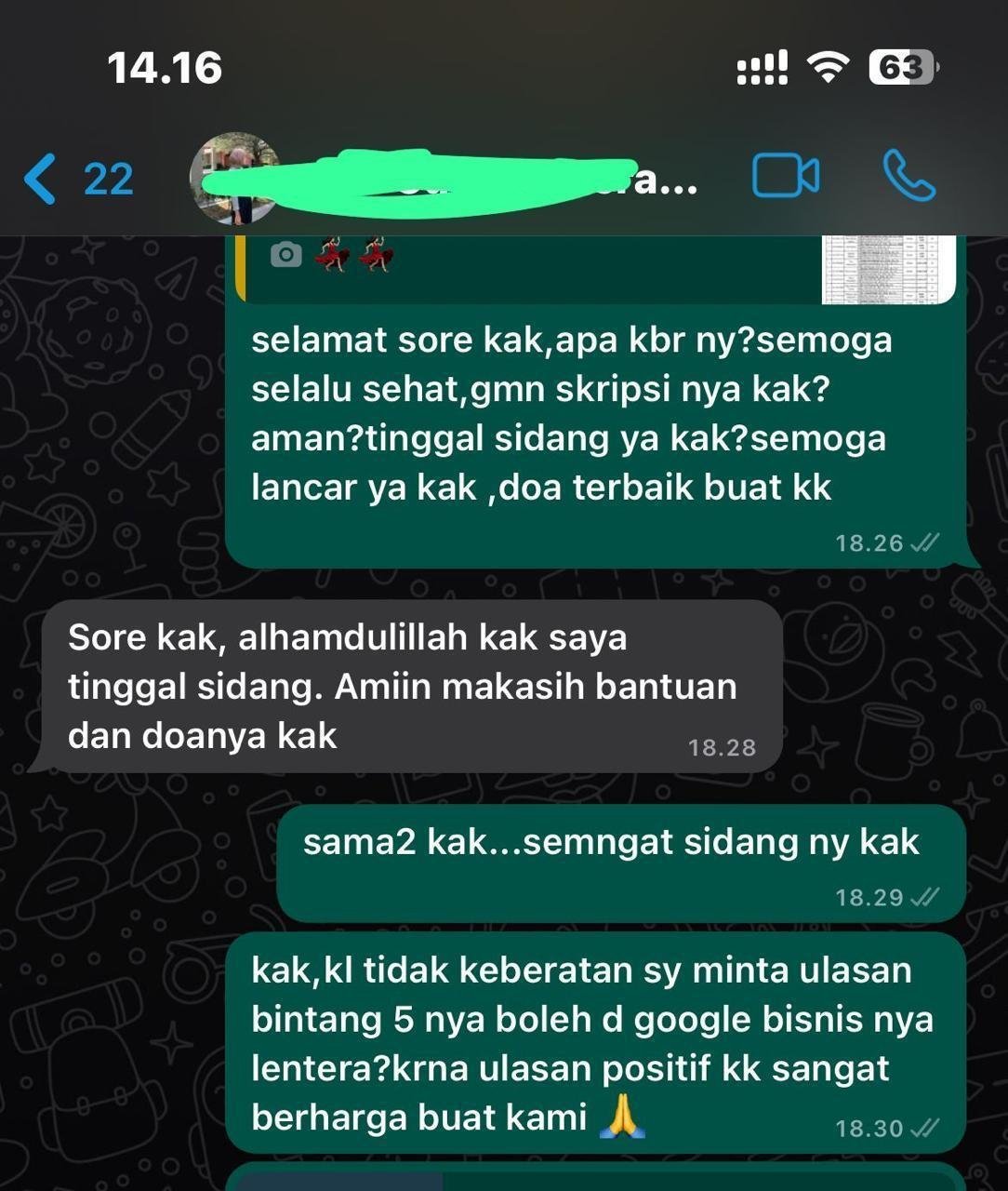 Dengan sistem kerja yang terstruktur dan pendampingan yang profesional, PT Lentera Statistics Indonesia menjadi pilihan tepat bagi mahasiswa yang membutuhkan bimbingan akademik yang aman, terpercaya, dan bertanggung jawab.