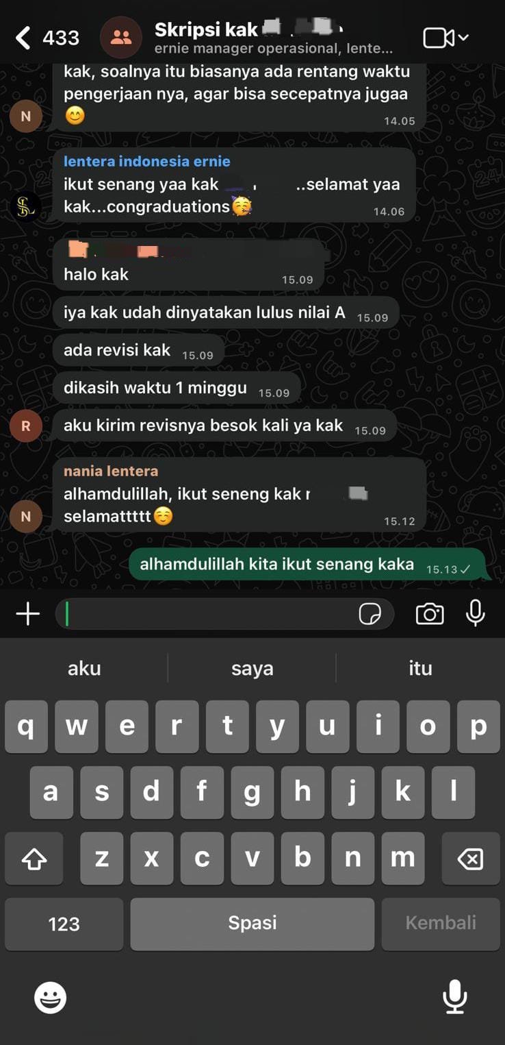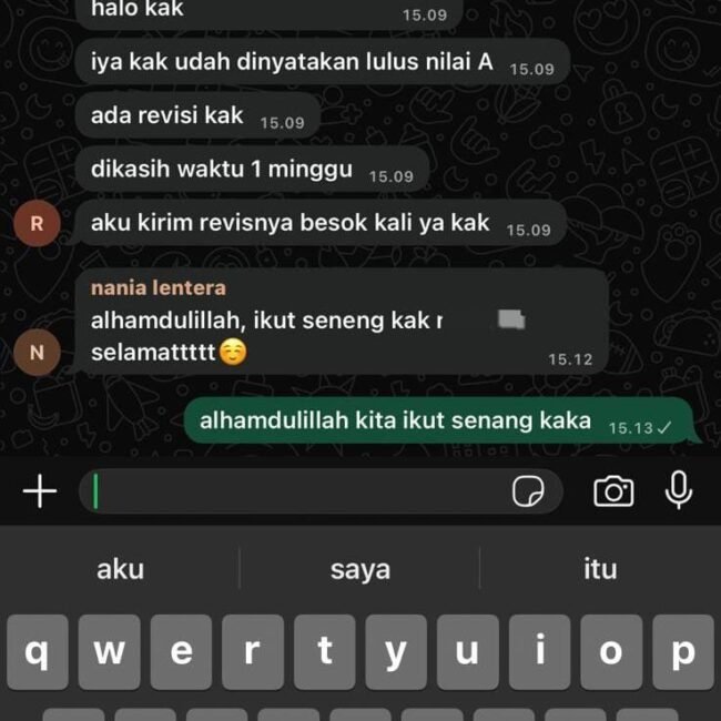 Setiap klien mendapatkan revisi hingga ACC dosen pembimbing, termasuk revisi setelah sidang. Oleh karena itu, hasil akhir lebih sesuai dengan arahan dosen dan standar akademik.