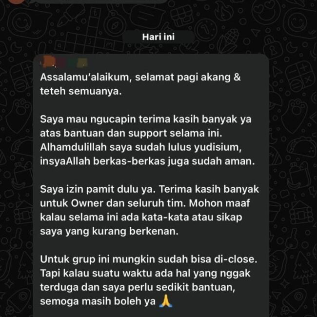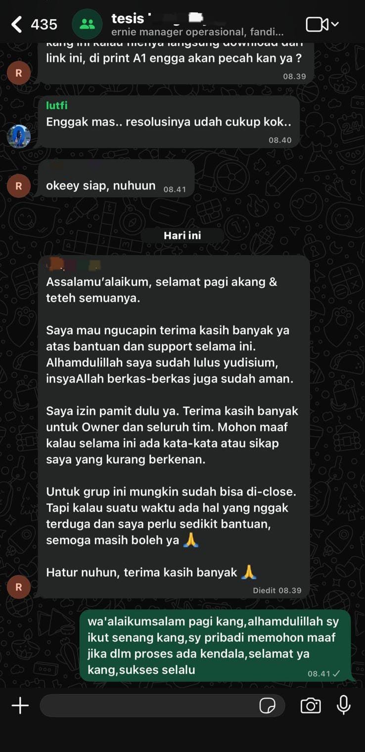 “Lebih tenang menghadapi sidang karena semua dipersiapkan dengan baik dan sesuai aturan kampus.”